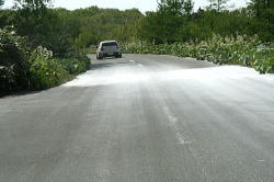 そうそう、牧場につながる道路の地面に白い粉が敷き詰められていました。