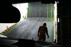 八戸港にはAM7時30分、定刻どおり到着。我々の車が降車の順番1番、目の前の船底が開き