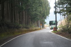 千頭駅からはバスが走っているとはいえ、それはそれは小型のバスに遭遇しました。それもそのはず、山奥の道路を進むと舗装