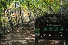 西沢渓谷は秩父多摩甲斐国立公園内にある国内屈指の渓谷美を誇る景勝地です。原生林を流れる渓流がいくつもの滝を作り、三重の滝、竜神の滝、恋糸の滝、七ツ釜五段の滝などがあります。渓谷内はハイキングコースが設けられ、初夏のシャクナゲや秋の紅葉観賞が楽しめます。 |